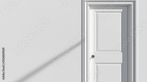 A close-up of a door frame with a new door installed, leaving an empty area around the door for text or copy.