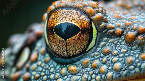 A close-up of a frog's textured skin, highlighting the intricate patterns and natural colors that help it blend into its environment.