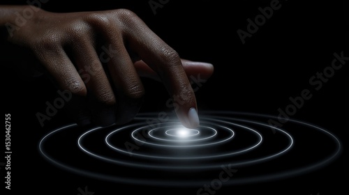 closeup, hand, control, generator, visual, wave, radiating, outward, illustrating, moment, muted, digitally, physically, interaction, interface, technology, sensory, response, bubble, activation, effect