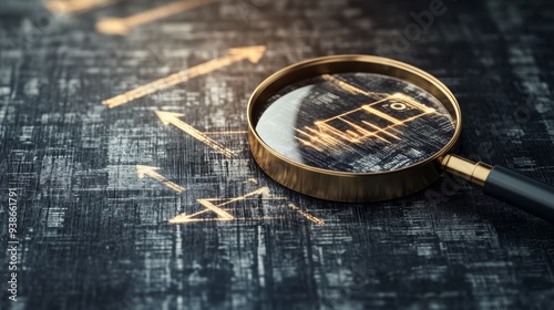 A close-up of a magnifying glass over financial graphs, symbolizing analysis, growth, and business insights.