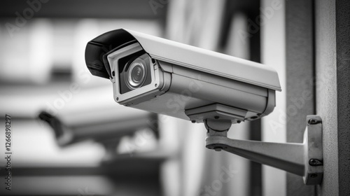 A close-up of a modern security camera mounted on a building exterior, capturing a clear view of the entrance, emphasizing the importance of surveillance for safety.