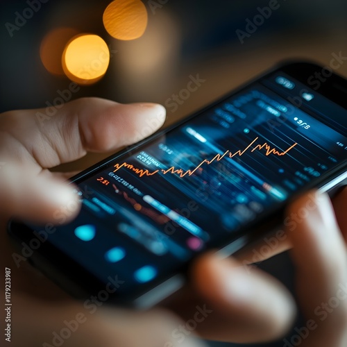A close-up of a person using a fintech app to manage investments on their smartphone.