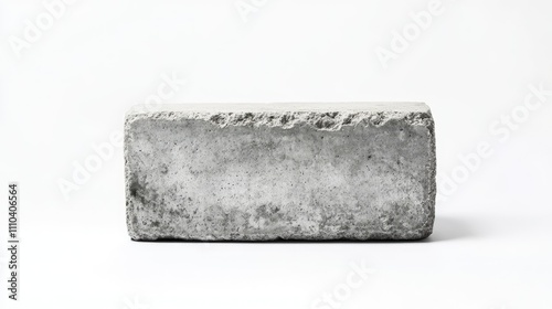 A close-up of a single gray cement concrete block, isolated on a clean white background with sharp details