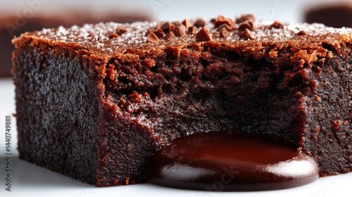 a close-up of a soft chocolate brownie with a bite taken out on a white isolated background, rich and delicious design