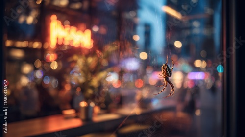 spider, window, city, night, light, urban, nature, closeup, macro, life, scenery, create, showcase, colours, nightlife, bokeh, visual, brightness, creature, ambience, detail, vibrant, honed, moment, high-coloured, enchant, insect, beauty, contrast, movement, background, texture, decor, silhouette, wildlife, sharpened, design, close, city landscape