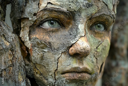 face, bark, texture, nature, art, sculpture, expression, detail, wood, eye, skin, organic, creative, portrait, realism, emotion, environment, design, craftsmanship, character, form, illusion, beauty, human, foliage, earth, growth, transformation, harmony, abstract, representation, aesthetic, unique, artistic, natural, feature, surreal, blend, imagery, visual, concept, identity, stillness, connection, inspiration, creativity