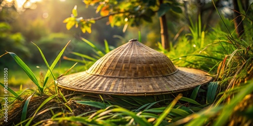 bamboo, hat, ground, nature, tradition, worn, documentary, photo, cultural, serene, texture, environment, closeup, craftsmanship, natural, earthy, element, nostalgia, landscape, detail, sunlight, grass, leaf, heritage, artisan, rustic, simplicity, pattern, shadow, warm, tranquil, history, rural, organic, weathered, scene, aesthetic, visual, beauty, artifact, hand-made, artistic, essence, atmosphere