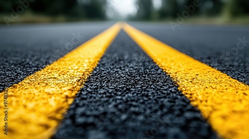 A close-up of newly painted road lines on a smooth asphalt surface, ready for traffic road lines, asphalt, smooth surface