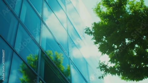 A close-up of the reflection in modern glass window christmas themed