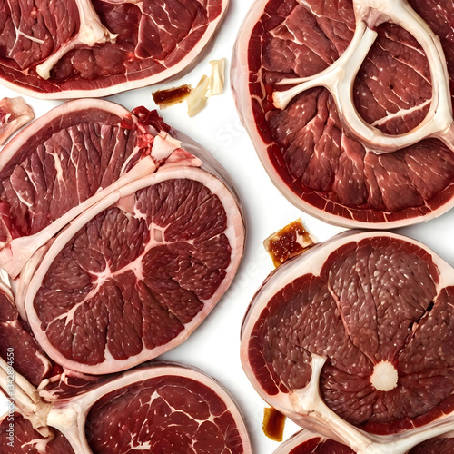 A Close-Up of Three Raw Meat Cuts, Highlighting the Natural Textures and Rich Hues