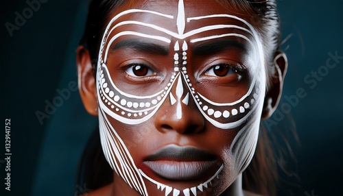 A close-up of tribal face markings, showing small cuts and scars that represent different rites of passage and cultural significance.