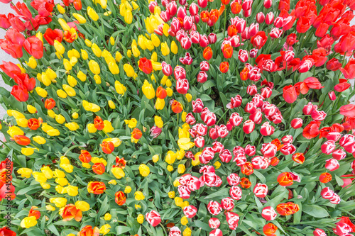 tulip, red, white, pink, flower, park, patch, dew, drop, garden, leaf, green leaf, asia, china, sichuan, chongqing, arboretum, spring, day, no one, background, closeup, sunny, green, lush, in full bloom, plant, tour tourism, flower, garden, nature, colourful, yellow, summer, plant, bloom, orange, pattern, colours, blossom, floral