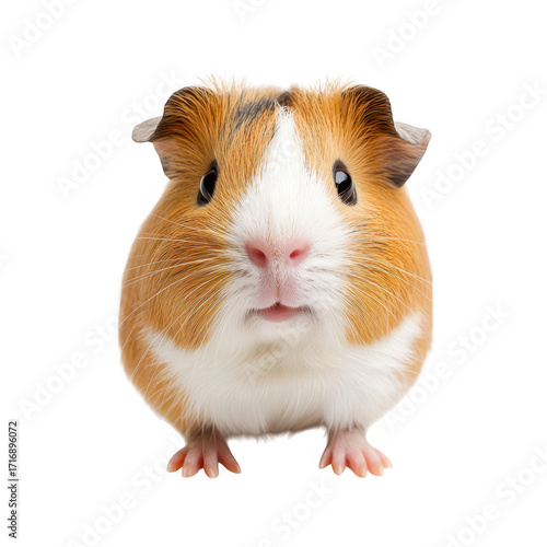 A close-up portrait of a curious guinea pig with a golden-brown and white coat. its adorable features and bright eyes. perfect for pet-related content or animal care articles