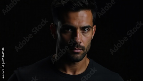 portrait, man, serious, intense, expression, face, black, background, close, up, male, sharpened, dark, shadow, thoughtful, confident, moody, attention, depth, detail, high, quality, image, shot, beautiful, colourful, bright, creative, modern, elegant, stylish, professional, decorative, vibrant, stunning
