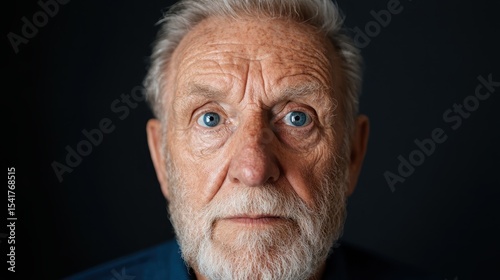 A close-up portrait of an elderly man with a wise gaze, his striking blue eyes and weathered face reveal a life full of stories, wisdom, and deep experiences.