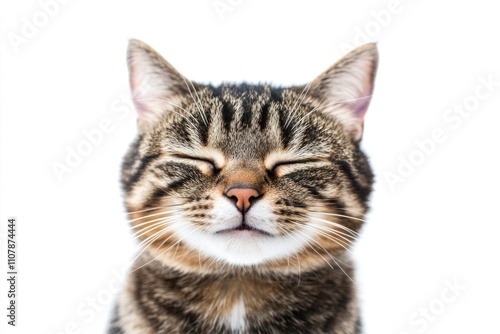 A close-up shot of a cat's face with its eyes shut, suitable for use in pet-related or animal-themed projects