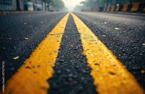 yellow, road, asphalt, pavement, street, double, line, traffic, transportation, travel, vehicle, highway, lane, surface, urban, city landscape, infrastructure, roadway, route, texture, marking, perspective, horizon, blurred, background, daytime, outdoors, concept, system, line, scene, network