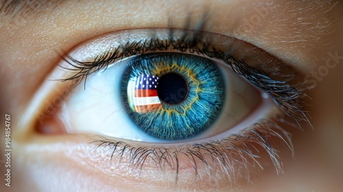 A Close-Up View of a Human Eye Reflecting the Colors of the American Flag