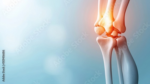 A close-up view of a knee joint highlighting inflammation, illustrating anatomy with a soft background.