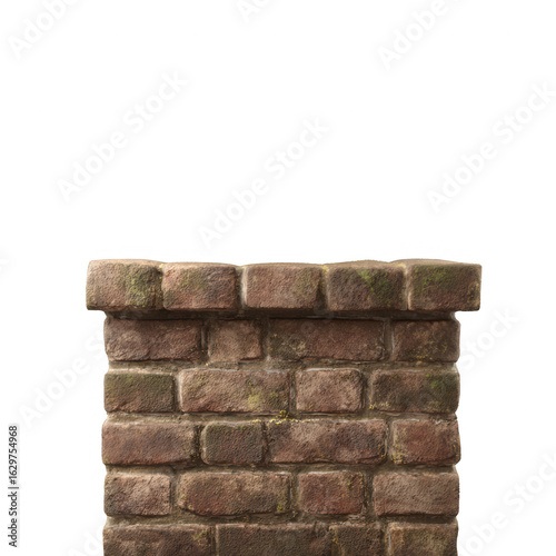 A close-up view of a rustic brick wall section with detailed texture and earthy tones, isolated on a white background.