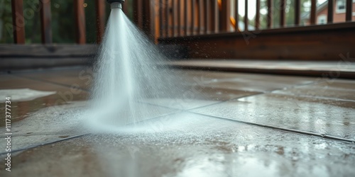 A close-up view of a water jet spraying on a tiled surface, creating a refreshing and cleansing effect.