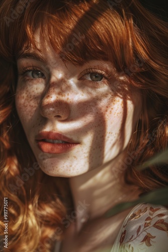 A close-up view of a woman's face, featuring freckles, for use in portraits or beauty products