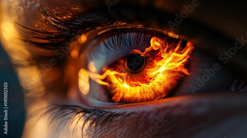 eye, fire, flames, burning, inferno, glowing, orange, red, yellow, heat, light, vision, intense, passion, anger, fury, wrath, energy, power, blaze, glow, detail, macro, human, iris, pupil, eyelash, dark, texture, passionate, fiery, fierce, visual, amazing, beauty, shadow