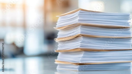 A close-up view of neatly stacked paperwork on a desk, representing the organized nature of office work and documentation in a professional environment.