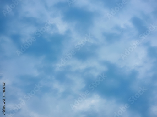 A cloudy sky with a mix of white and gray clouds, creates a dramatic and moody atmosphere