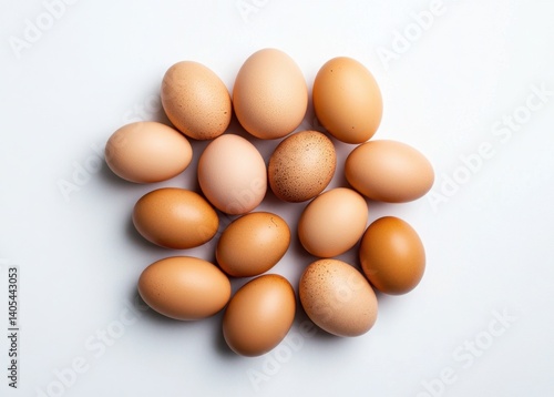 A cluster of brown eggs arranged on a clean white background, showcasing natural textures and warm tones