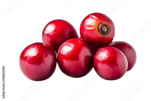 A cluster of vibrant, glossy red berries on a white background, showcasing their fresh and juicy appeal.