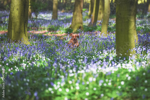 forest, flower, flower, spring, nature, green, wood, grass, bluebell, landscape, tree, blue, tree, meadow, wild, wood, summer, beautiful, park, field, garden, flora, timberland, plant, cocker spaniel, puppy, dog, walk, ginger, gold, tongue, majestic