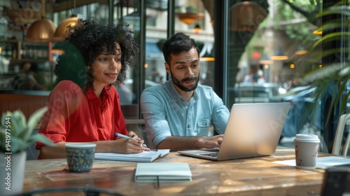 technology, woman, office, business, people, professional, indoor, laptop, workspace, meeting, man, hot drink, cafes, teamwork, computer, urban, analysis, interior, conversation, brainstorming, workplace, writing, working, notebook, collaboration, sitting, table, colleague, modern, discussion, co-worker, planning, partnership, sharpened, homework, creative, idea, project, interracial, job, contemporary, productivity