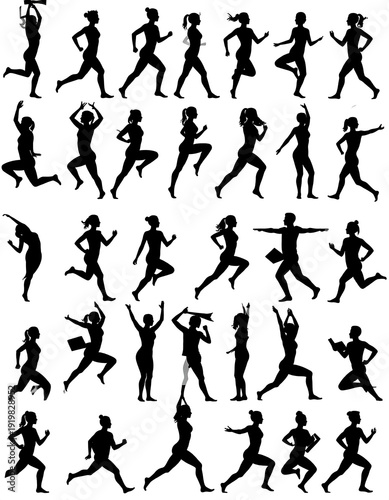 A collection of 25 black silhouettes of people dancing