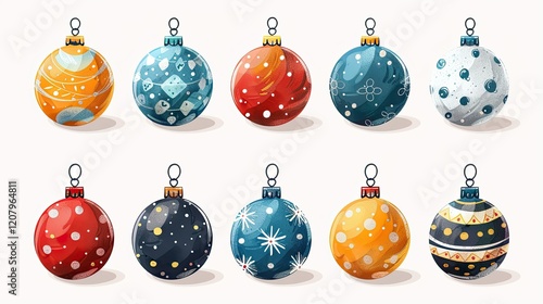 A collection of colorful Christmas ornaments displayed in a decorative arrangement.