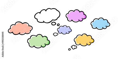 A collection of colorful thought bubbles floating in a white space