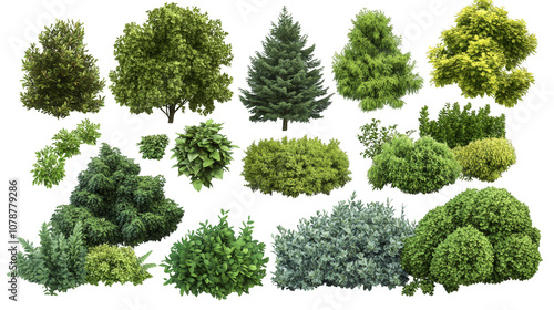 collection, different, type, bush, tree, green, vary, plant, size, shape, nature, leaf, gardening, park, white, growth, background, hedge, spring, botany, foliage, flora, forest, environment, summer, decoration, shrub, beautiful, evergreen, round, ornamental, design, topiary, lawn, grass, tree branch, fresh, landscaping, flower, pattern, botanical, outdoors, object, ai