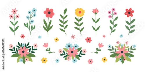 A collection of flowers and floral elements on a transparent background. Perfect for weddings, invitations, and greeting cards. Elegant vector designs for floral posters and decorative compositions.