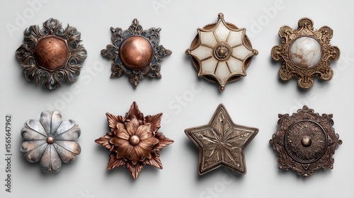 A collection of ornate decorative hardware pieces showcases various intricate designs and finishes, ideal for home decor projects, restoration work, or crafting inspiration
