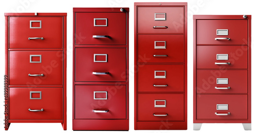 A collection of red filing cabinets