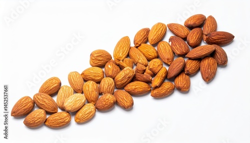 A Collection of Roasted Almonds on White Background Healthy Snack Food Image