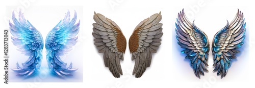 airy, angel, artistic, artwork, avian, bird, bright, clip art, collection, colourful, cut-out, decorative, design, detailed, different, digital artwork, elegant, element, aethereal, fantasy, feather, flight, fly, freedom, graceful, graphic, illustration, isolated, light, mythical, ornate, pair, plumage, set, spiritual, style, unique, variety, white background