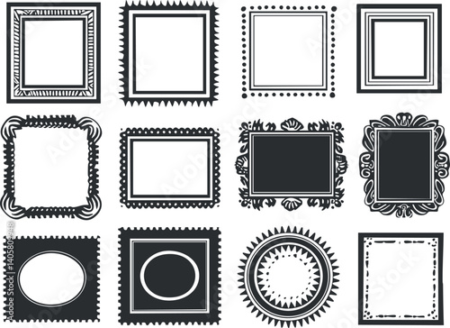 A collection of various decorative frames in black and white for artistic use.