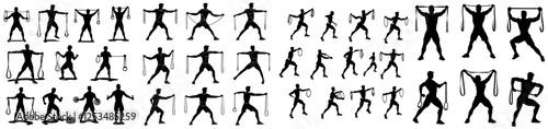 sport, exercise, silhouette, set, collection, training, many, different, physical exercise, gym, fitness, man, people, vector, full body, muscle, isolated, pose, squat, stretching, elastic, male, recreation, athlete, bodycare, active, well-being, healthy, young, bar, strong, lifestyle, callisthenics, jogging, running, illustration, leisure, white, flexing, various, equipment, fit, black, figure, clip art