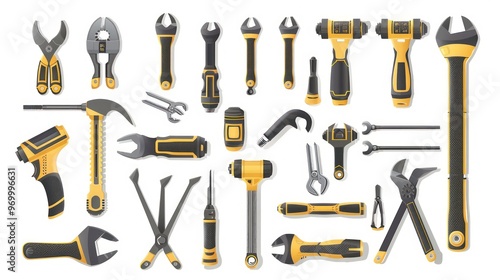 tool, wrench, plier, screwdriver, hammer, chisel, drill, repair, construction, mechanic, engineer, bricolage, work, equipment, hardware, maintenance, building, home, workshop, isolated, white, background, set, collection, assorted, variety, assortment, industrial, professional, handyman, craft, instrument, object, metal, plastic, handle, grip, sharp, fix, job, tooling, handy, fixing, steel, improvement, garage, industry