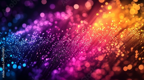 A colorful array of fiber-optic cables, glowing with vibrant colors against the dark background, symbolizing advanced data transfer technology and connectivity.
