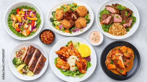 salad, chicken, beef, rice, vegetable, sauce, greener, fruit, garnish, seafood, cookery, platter, meal, herb, dressing, favor, fresh, healthy, grilled, savoury, sweet, crispy, tender, aromatic, colourful, side, main, portion, bowl, dish, receipe, cook, dining, feast, nourishment, epicure, culinary, presentation, table, eat, share, enjoy, family, friends, variety, indulgence, seasonal