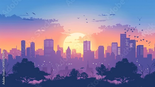 city, sunset, skyline, building, architecture, urban, landscape, art, design, illustration, graphic, colourful, bright, beautiful, peaceful, serene, night, evening, sky, cloud, sun, light, horizon, view, city landscape, urban art