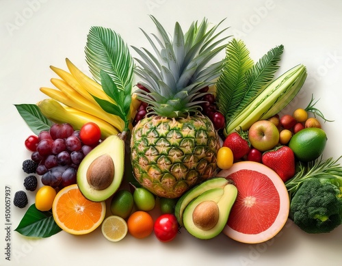 fruit, pineapple, food, apple, orange, fresh, healthy, isolated, fruit, banana, kiwi, ripe, lemon, grape, citrous, tropical, white, grape, diet, red, green, group, pear, pineapple, mixed