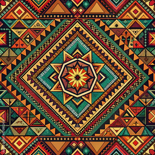 A Colorful Geometric Pattern with Tribal Influences.